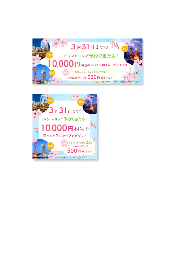バナー作成 2025年9月17日 最終更新日時 : 2025年9月17日 yuki 【製作時間】3時間/1枚【使用ソフト】Photoshop・illustrator【担当業務】デザイン【意識した亊】春らしい季節感が伝わるデザインにしました。